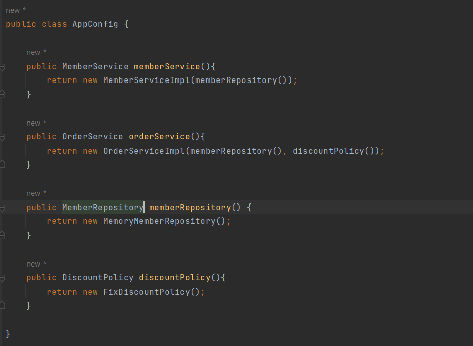 ex) OrderServiceImpl의 구현객체는 AppConfig에서 정의